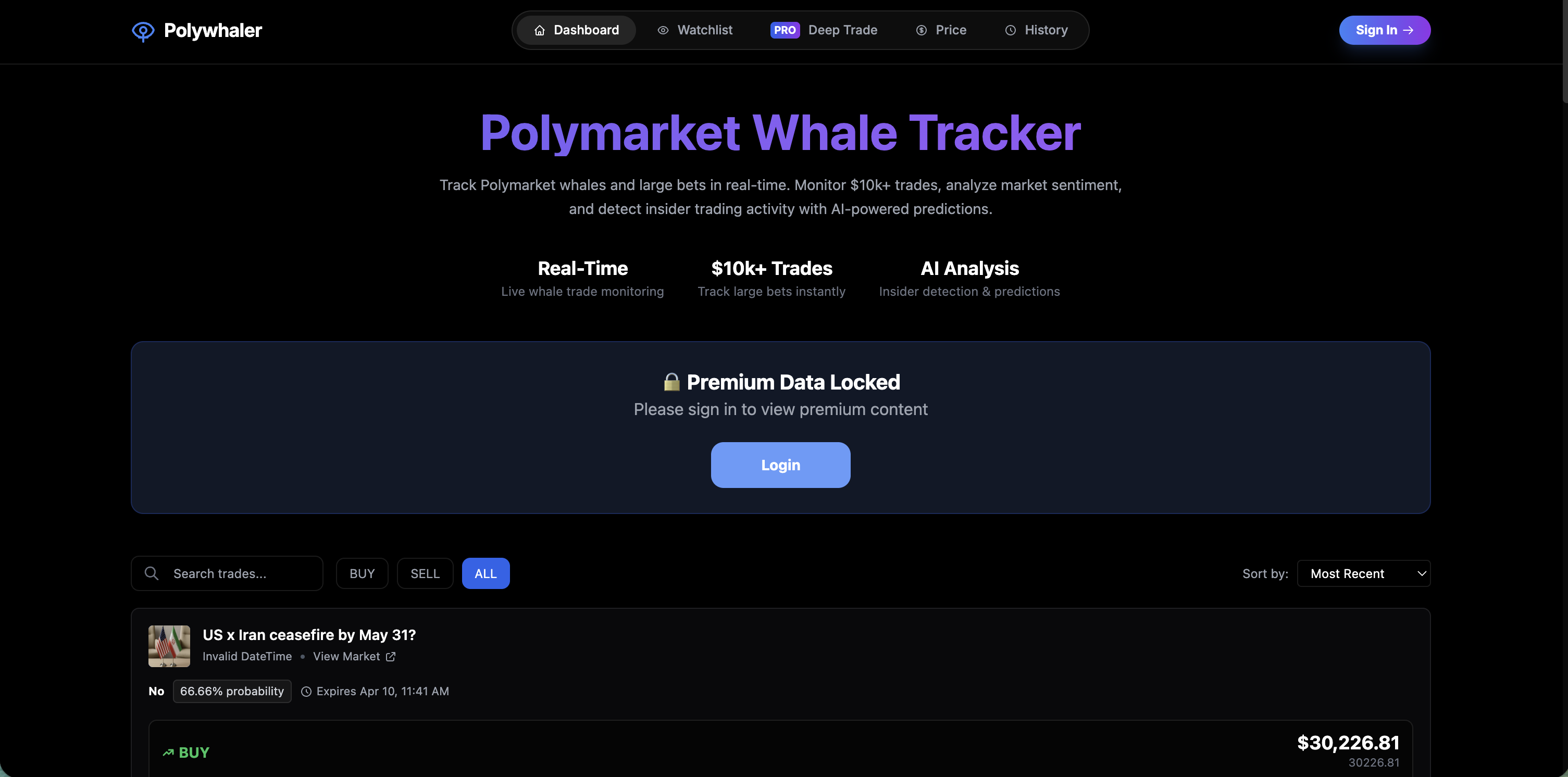Like Polywhaler, it is an information tool rather than an execution tool. No order placement, no automation, no portfolio alerts.