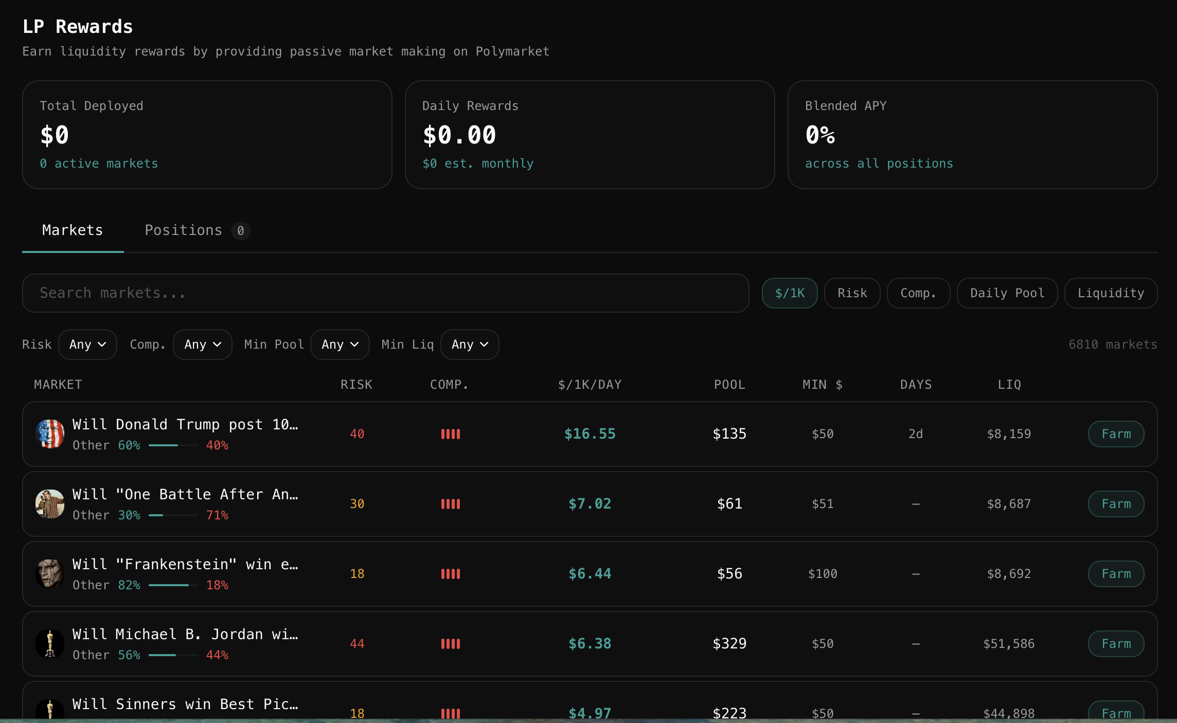 LP farming automation. Bravado's LP farming tools handle the most repetitive bot-like task in prediction market trading: replacing filled limit orders continuously to maintain book presence. Auto-replace detects a fill and places a replacement immediately, maintaining your reward share without any manual step.