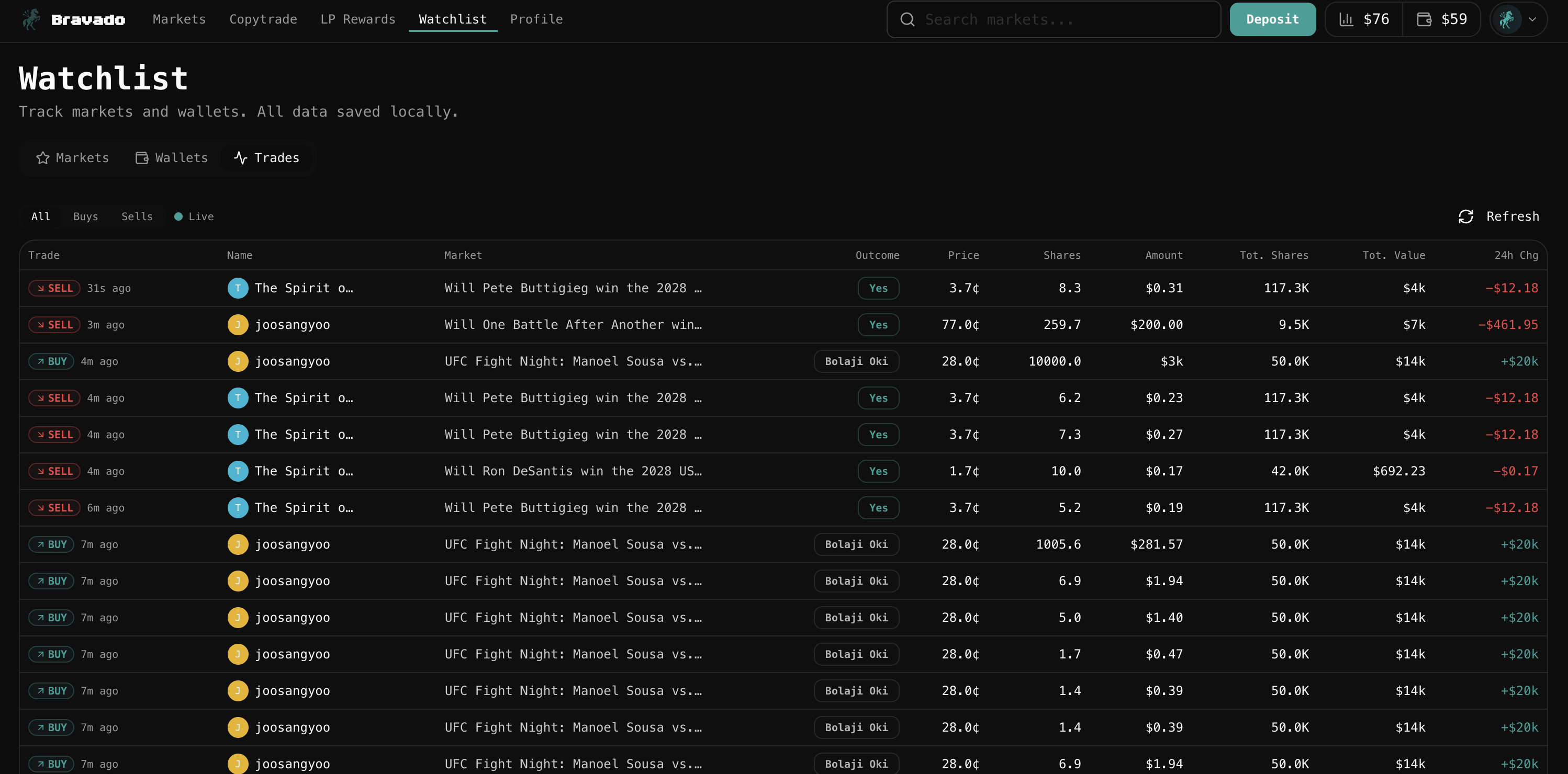 Bravado's Watchlist: Your Smart Money Feed
